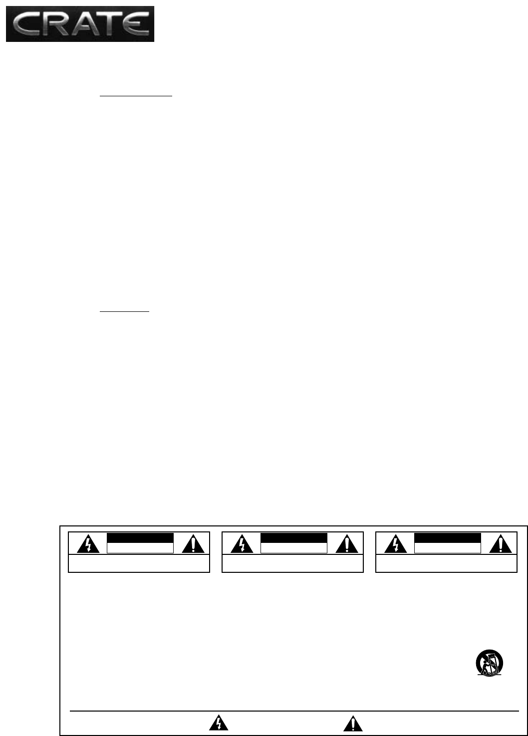 Like all Crate products, your SPA100 amplifier was designed and manufactured using only the