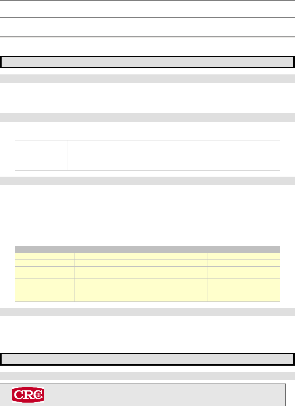 CRC Industries Europe, Belgium: Tel.: +32(0)52/45.60.11 (office hours)