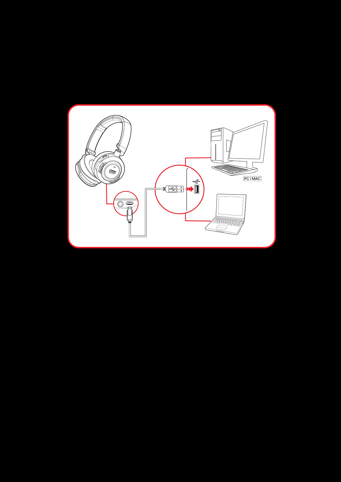 Power ON/OFF button. The LED will light in red once the headset is properly connected. Experience