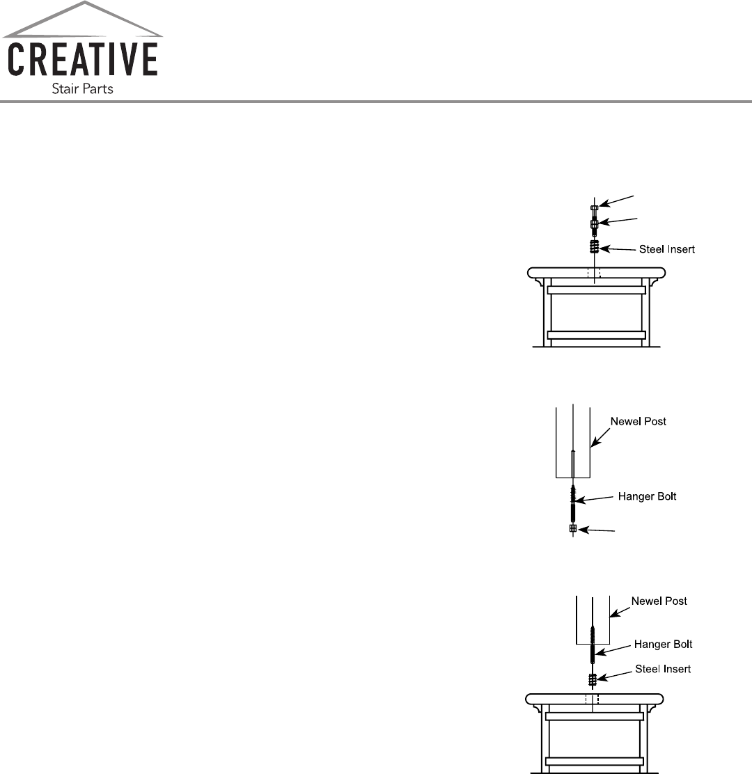 1. T hread the Hex Bolt installed on the newel post into the Steel Insert until it contacts the