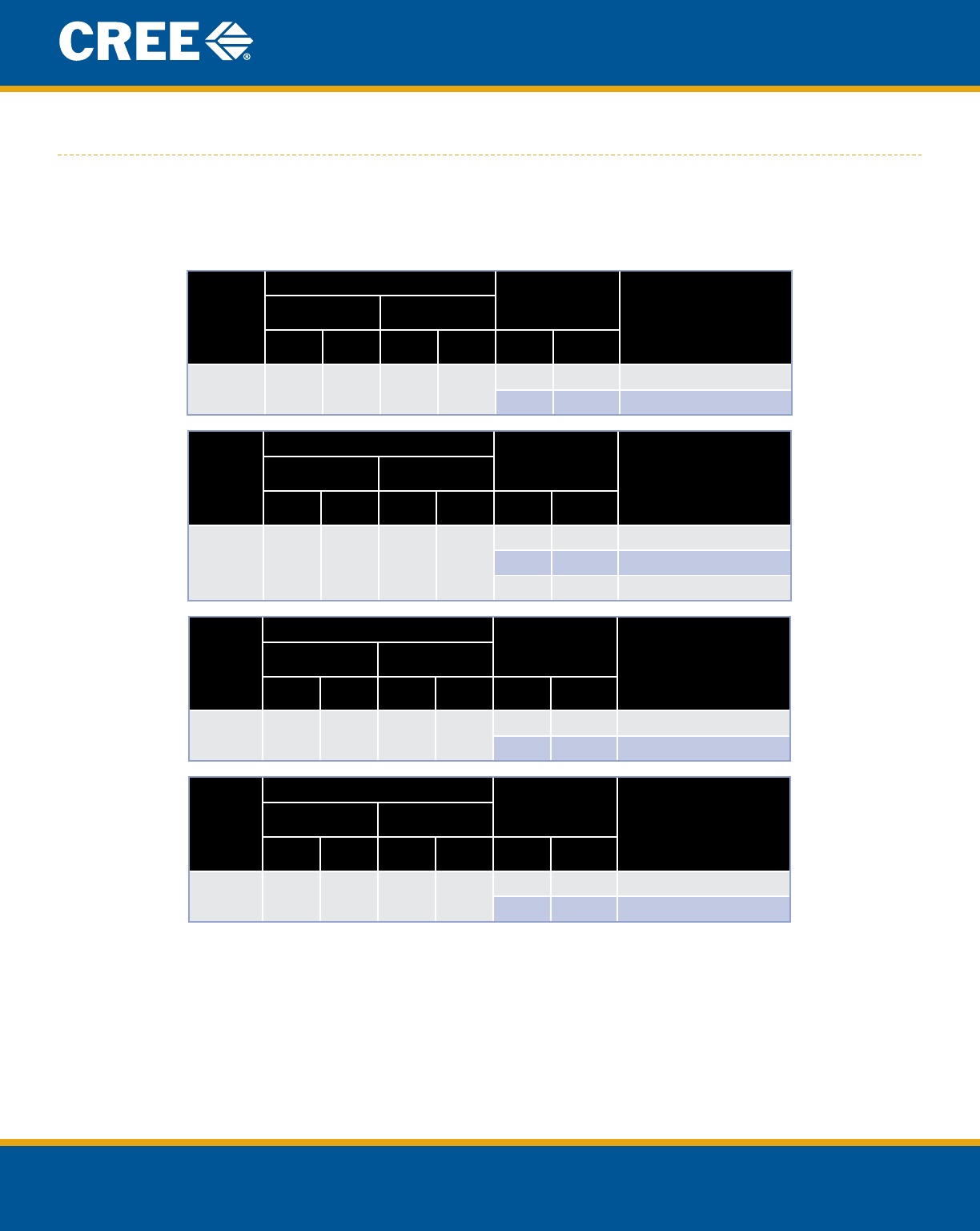 • Cree maintains a tolerance of ±7% on ux and power measurements, ±0.005 on chromaticity (CCx, CCy)