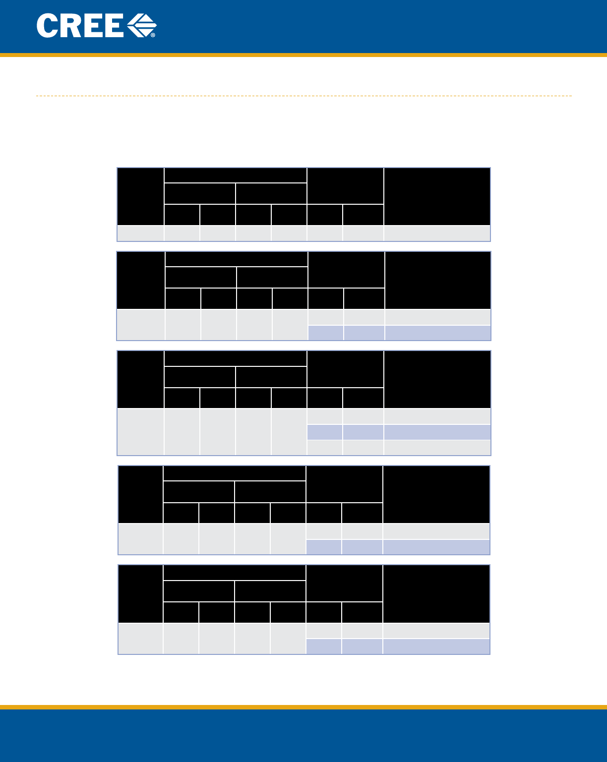 • Cree maintains a tolerance of ±7% on ux and power measurements, ±0.005 on chromaticity (CCx, CCy)