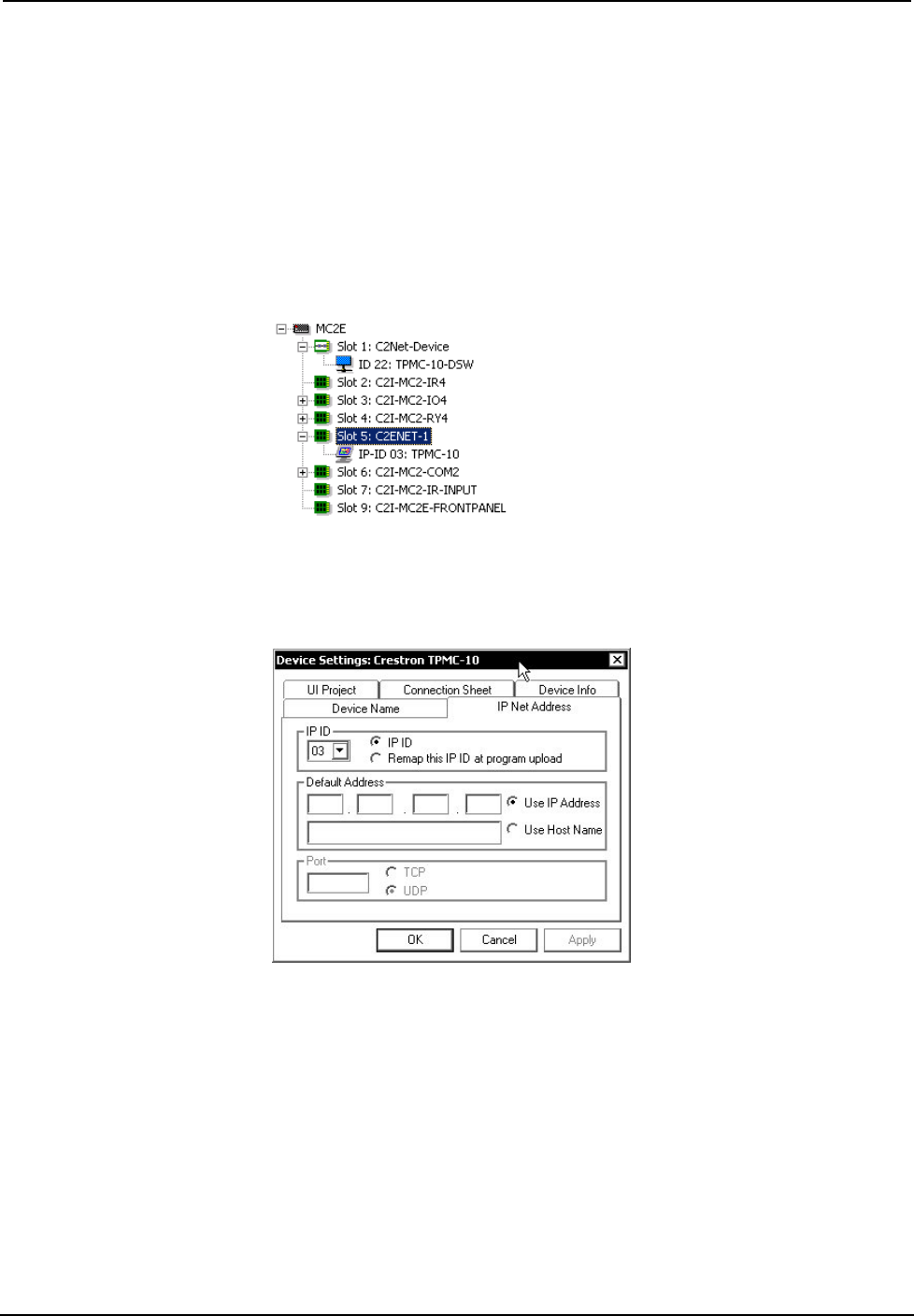 Device Library and drop it on the C2ENET-1 in Slot 5. The MC2E displays the