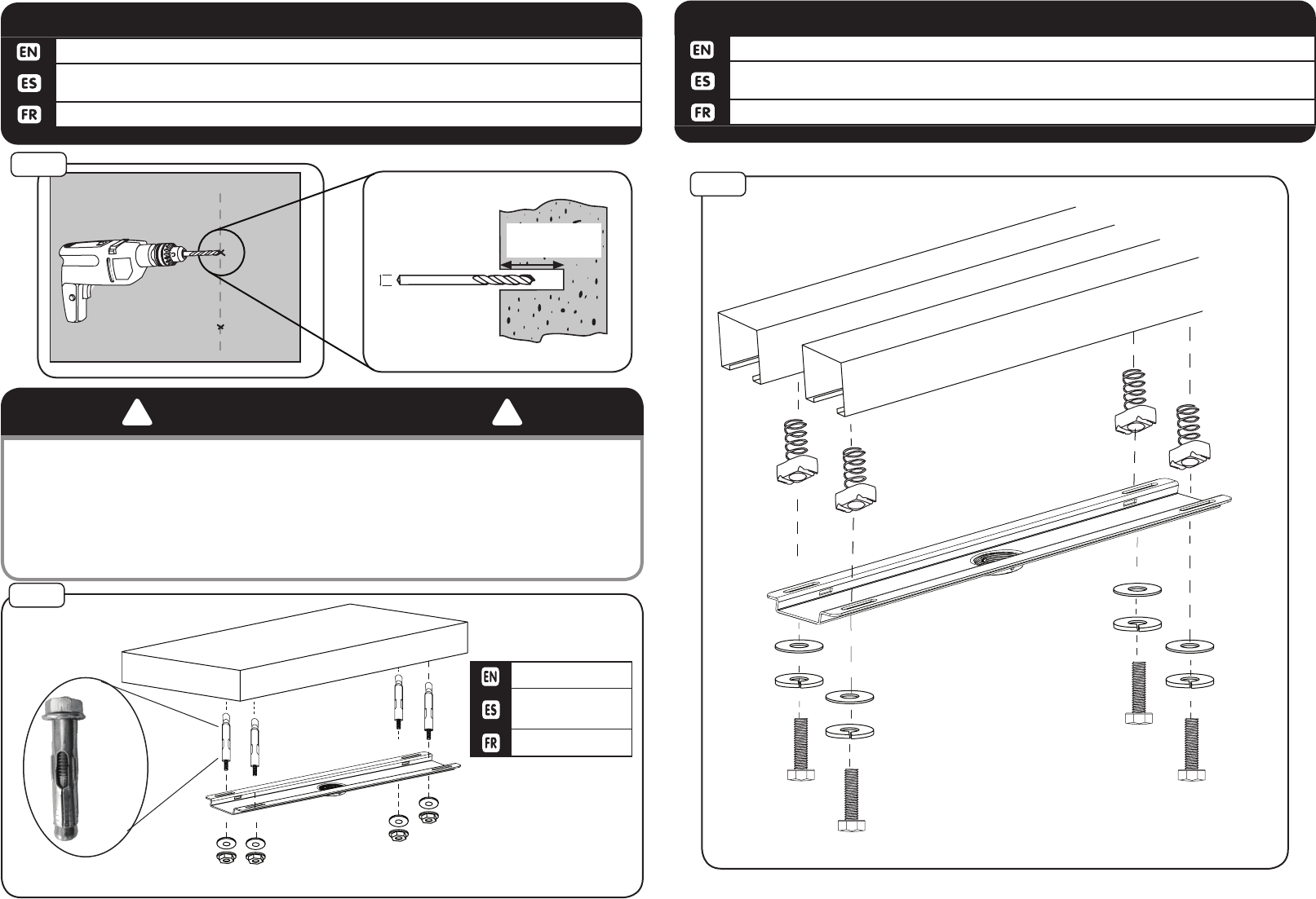 Utilisez un 8mm-5/16” bits de maçonnerie pour faire un 32mm/1.25” trou profond sur les marques.