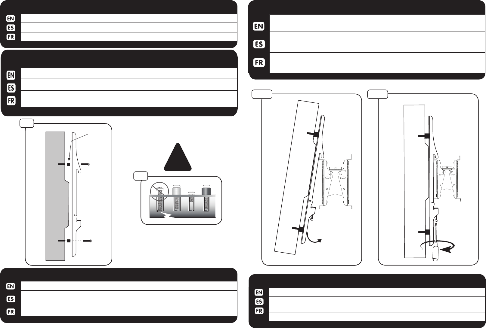 Si los tornillos tocó fondo a continuación, utilizar arandelas (no incluidos) para elimi-