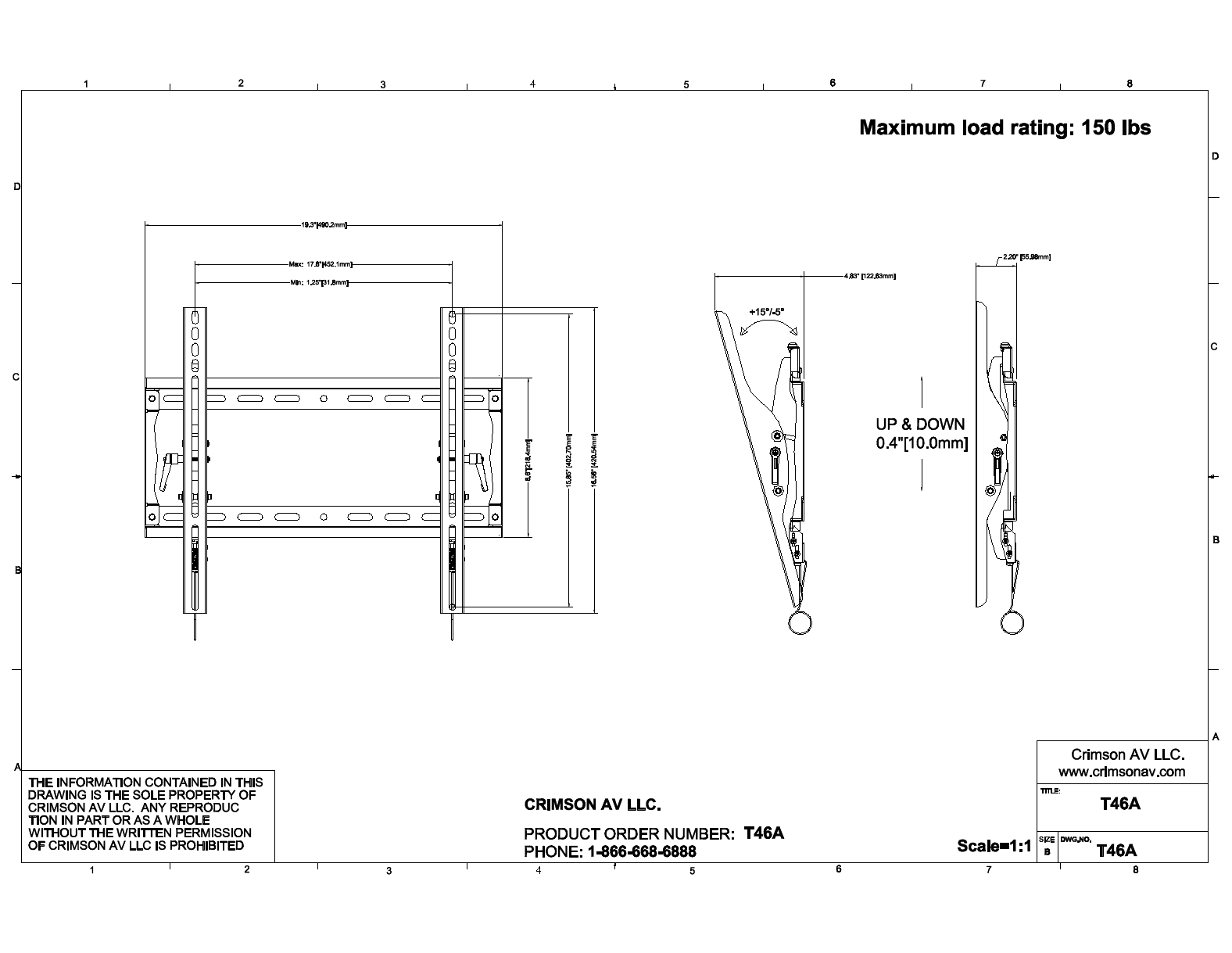 THE INFORMATION CONTAINED IN THIS DRAWING IS THE SOLE PROPERTY OF CRIMSON AV LLC. ANY REPRODUCE SON IN PART OR AS A WHOLE WITHOUT THE WRITTEN PERMISSION OF CRIMSON AV LLC IS PROHIBITED dale CRIMSON AV LLC. PRODUCT ORDER NUMBER: T46A PHONE: 1-866-668-6888 Maximum load rating: 150 Ibs | UP & DOWN 0.4710.0mm] Crimson AV LLC. 'www.crimsonav.