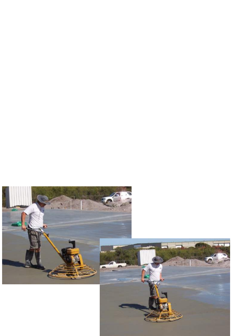 - Smooth partially set floor surface; operate the machine with blades fattened.