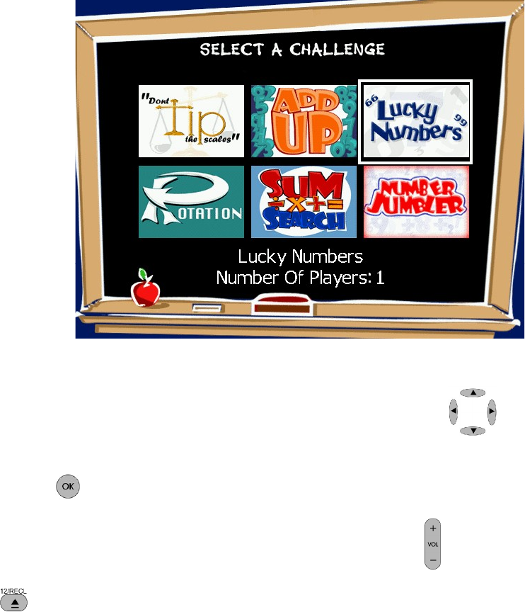 Games Menu Screen (use remote)