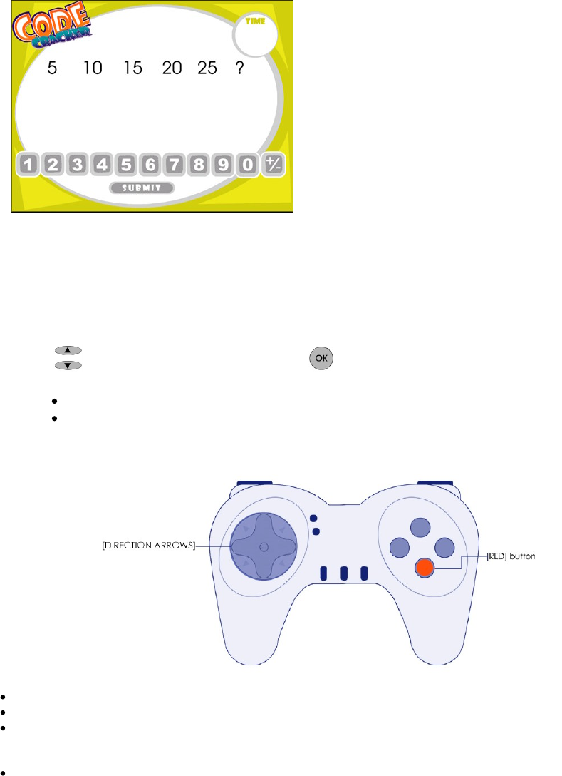 4 7 8 9. Select the 'CODE CRACKER' game and set the different values (see page 11 for more