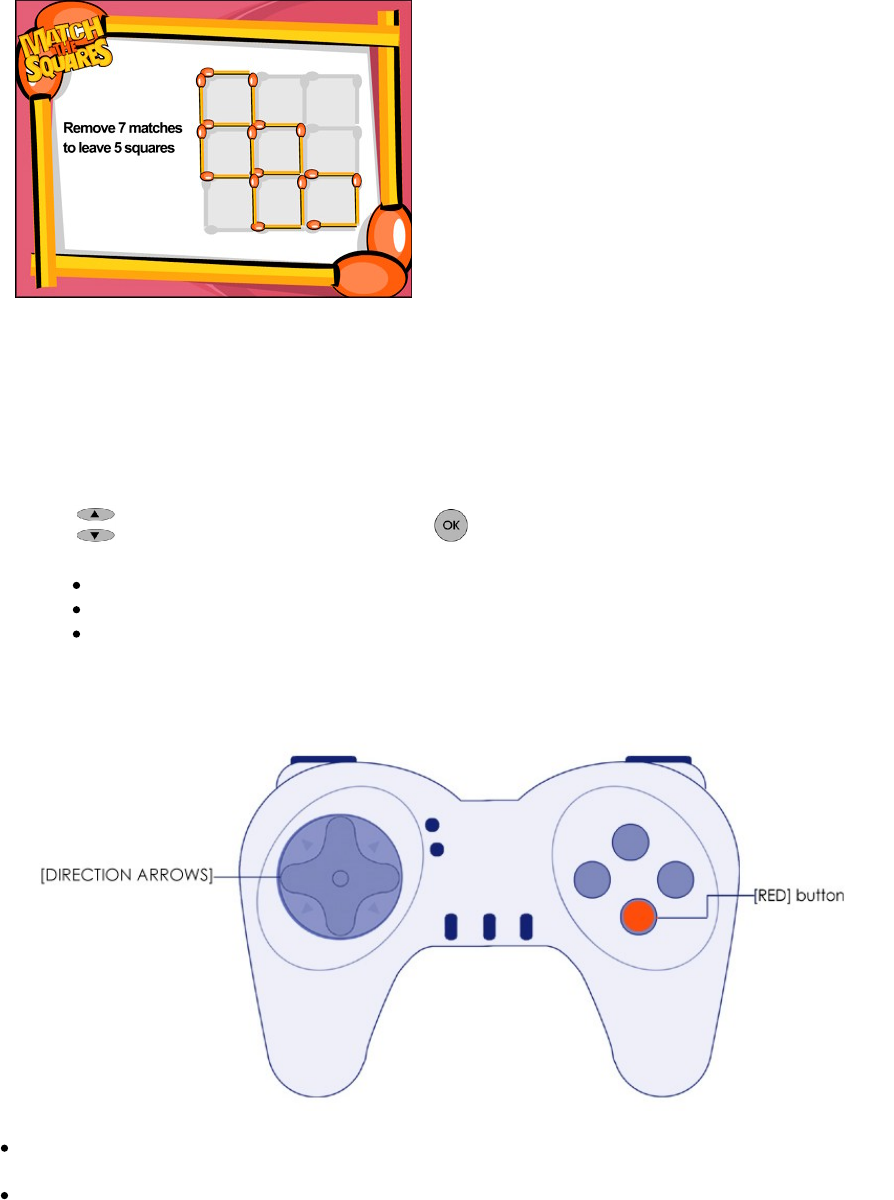 Use left/right/up/down [DIRECTION ARROWS] to highlight matchsticks.