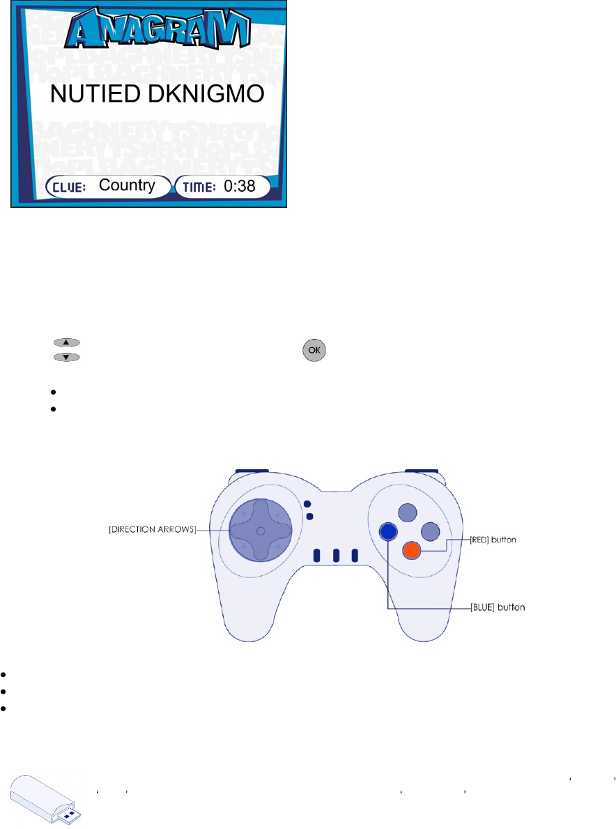 4 7 8 9. Select the 'ANAGRAM' game and set the different values (see page 11 for more details).