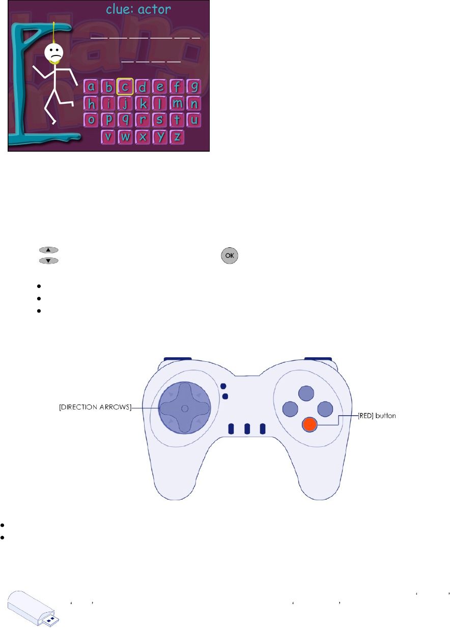 4 7 8 9. Select the 'HANGMAN' game and set the different values (see page 11 for more details).