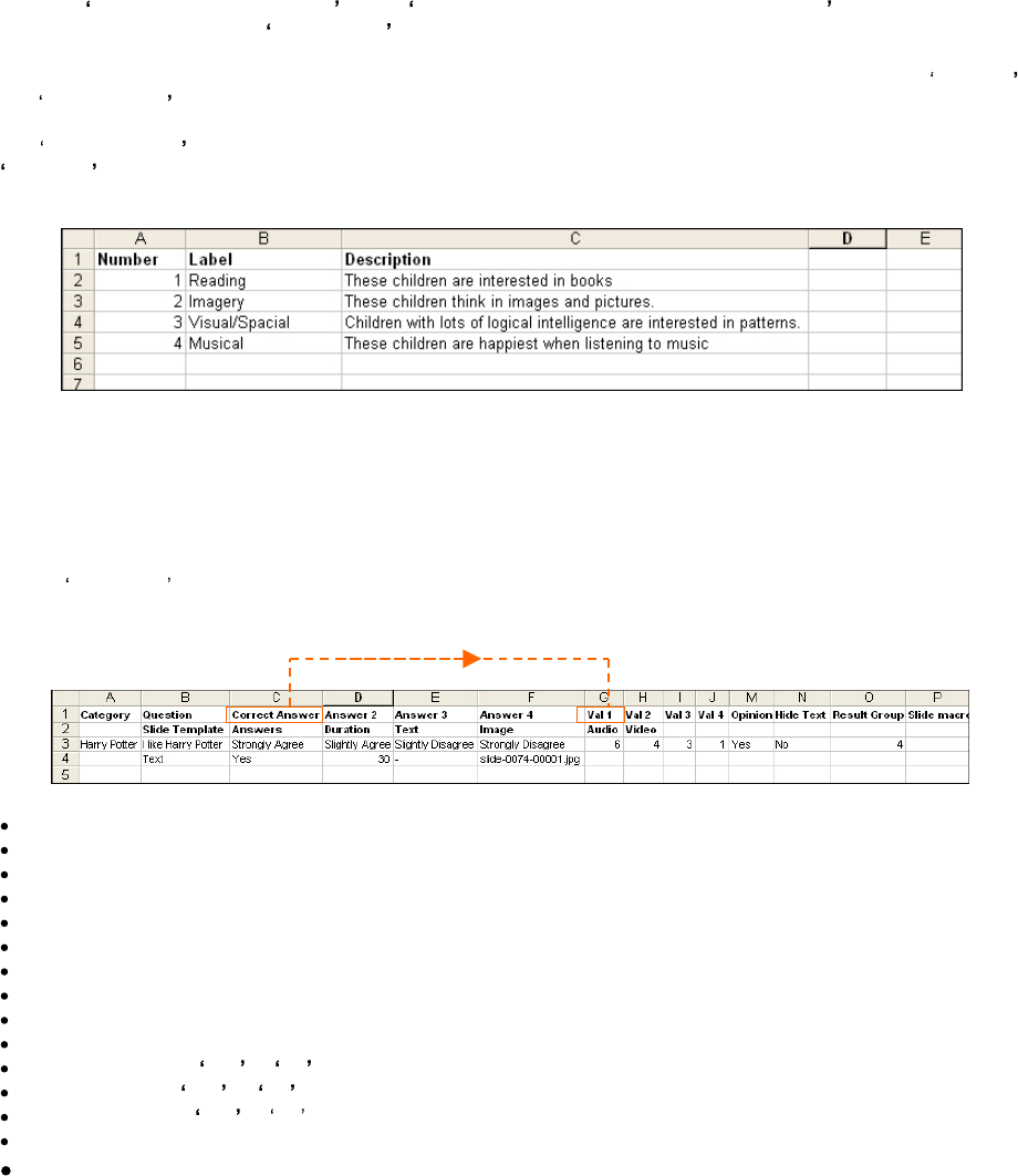 The spreadsheet should have 4 work sheets - Settings, Slide Macros, Result Groups and Questions. The Settings ,