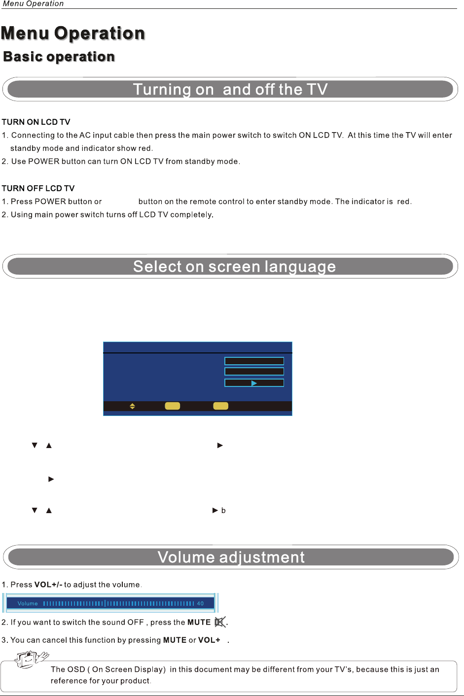 / button to select this item, then press OK / button to select the OSD language.