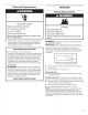 AVERTISSEMENT : Pour votre sécurité, les renseignements dans ce manuel doivent étre observés pour réduire au minimum les risques d’incendie ou d’explosion ou pour éviter des dommages au produit, des blessures ou un décés. ~ Ne pas entreposer ou utiliser de l’essence ou d’autres vapeurs ou liquides inflammables a proximite de cet appareil ou de tout autre appareil electroménager. ~ QUE FAIRE DANS LE CAS D’UNE ODEUR DE GAZ : e Ne pas tenter d’allumer un appareil.