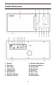 English Product Description 1. 2. 3. 4. 5. 6. 7. 8. Speaker Dial Scale Dial Pointer Tuning Knob Volume Knob Mode Button Play/Pause Button Function Indicator 9. Backward Skip Button 10. Forward Skip Button 11. SD Card Slot 12. FM Antenna 13. USB Port 14. Aux In Jack 15. Power Jack 16.