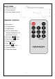 REAR PANEL 22) RCA Line out jack 23) FM wire antenna 24) AC power adaptor socket REMOTE CONTROL 25) Mute button 26) Program button 27) Repeat button 28) Function Mode button FM-AM-PHONO/AXU-CD BLUETOOTH-TAPE 29) Skip down button 30) Play/Pause button 31) Random button 32) Stop 33) Skip up button button 34) Folder up button 35) Folder down button 5