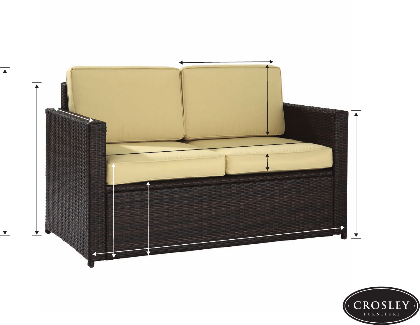 PALM HARBOR OUTDOOR WICKER LOVESEAT C07106-BR 23.25” 16.5” 28.75” 34” 46.5” 29.5” 4” 25” 17.5” 13.5” 53.