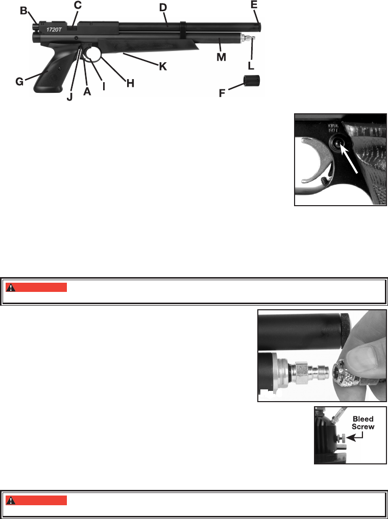 Disconnecting the ll hose from the airgun without bleeding the air rst may result in