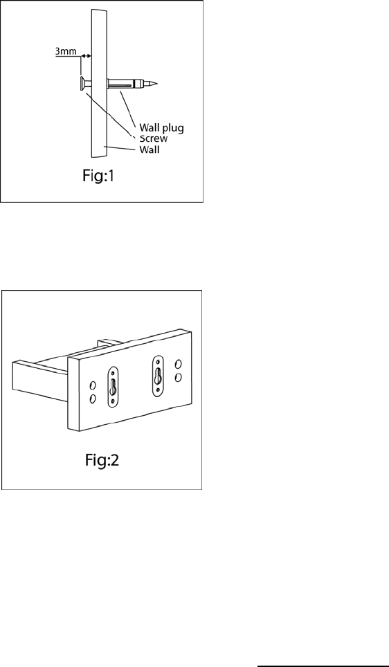 4. Screw the screws into the wall plugs leaving the screw head protruding by approximately
