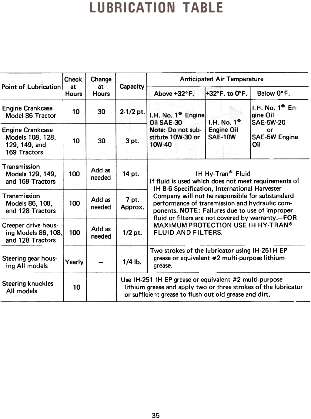 Use IH-251 IH EP grease or equivalent #2 multi-purpose