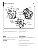 4 Controles y Características Estrangulador Filtro de aire Tapón de llenado Silenciador Recarga de combustible de combustible Tapón de llenado de aceite Llenado de aceite Estrangulador Acelerador Cebador Llave Acelerador Drenaje del aceite Carburant robinet d'arrêt Drenaje del aceite Botón de arranque Salida del arrancador eléctrico eléctrico Llenado de aceite Silenciador Estrangulador Arrancador de retroceso Mando Entrada de potencia Botón arrancado r Acelerador Control de paso del combustible