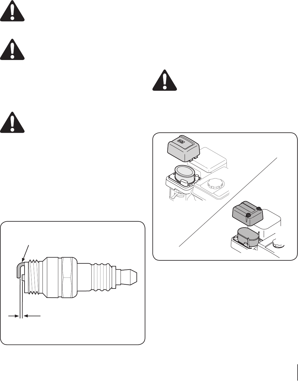 reinstalling a used spark plug, tighten ⁄-⁄ turn after the