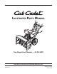 To The Owner Thank You Thank you for purchasing a Cub Cadet Snow Thrower. It was carefully engineered to provide excellent performance when properly operated and maintained. All information in this manual is relative to the most recent product information available at the time of printing. Please be aware that this Illustrated Part’s Manual may cover a range of product specifications for various models. Components listed and/or illustrated in this manual may not be applicable to all models.
