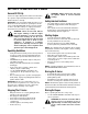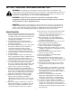 23. Muffler and engine become hot and can cause a burn. Do not touch. 24. Check overhead clearances carefully before driving under low hanging tree branches, wires, door openings etc., where the operator may be struck or pulled from the unit, which could result in serious injury. 25. Your machine is designed to cut normal residential grass of a height no more than 10“. Do not attempt to mow through unusually tall, dry grass(e.g., pasture) or piles of dry leaves.