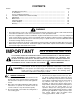 CONTENTS Section Page Safe Operation Practices ........................................................................................................ To The Owner ......................................................................................................................... Tractor and Deck Preparation ................................................................................................ Installation and Removal of Deck Assembly ........................................................