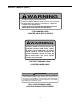 SAFETY LABELS STARTING INSTRUCTIONS IGNITION 1. KNOW THE OPERATING AND SAFETY INSTRUCTIONS IN THE OPERATORS'S MANUAL AND ON THE TRACTOR. 2. MOVE THROTTLE TO MID POSITION AND DEPRESS BRAKE PEDAL. 3. TURN KEY TO THE START POSITION. STOP STOPPING INSTRUCTIONS 1. DISENGAGE PTO AND SET PARKING BRAKE. 2. MOVE THROTTLE CONTROL TO MID POSITION AND TURN KEY OFF. WARN I N G AVOID SERIOUS INJURY OR DEATH. • • • • • • • • • • • GO UP AND DOWN SLOPES, NOT ACROSS. AVOID SUDDEN TURNS.