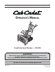 1 To The Owner Thank You Thank you for purchasing a Cub Cadet Snow Thrower. It was carefully engineered to provide excellent performance when properly operated and maintained. Please read this entire manual prior to operating the equipment. It instructs you how to safely and easily set up, operate and maintain your machine. Please be sure that you, and any other persons who will operate the machine, carefully follow the recommended safety practices at all times.