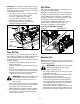 Drift Cutters IMPORTANT: If the auger shows ANY signs of rotating, immediately return to the operator’s position and shut off the engine. Wait for ALL moving parts to stop before re-adjusting the auger control. • • • • Drift cutters should be used when operating the snow thrower in heavy drift conditions. On models so equipped, drift cutters are assembled to the auger housing inverted.