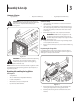 4. Carefully reposition the log splitter off of the crate by lifting up on the tongue tube, near the hitch coupling, and slowly rotating the machine clockwise. See Figure 3-7. Set-Up Gas and Oil Fill-Up Service the engine with gasoline and oil as instructed in the Engine Operator’s Manual. Read the instructions carefully. WARNING! Use extreme care when handling gasoline. Gasoline is extremely flammable and the vapors are explosive. Never fuel the machine indoors or while the engine is hot or running.