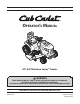 Safe Operation Practices • Set-Up • Operation • Maintenance • Service • Troubleshooting • Warranty Operator’s Manual XT1 & XT2 Enduro Series™ Tractor WARNING READ AND FOLLOW ALL SAFETY RULES AND INSTRUCTIONS IN THIS MANUAL BEFORE ATTEMPTING TO OPERATE THIS MACHINE. FAILURE TO COMPLY WITH THESE INSTRUCTIONS MAY RESULT IN PERSONAL INJURY. CUB CADET LLC, P.O. BOX 361131 CLEVELAND, OHIO 44136-0019 Printed In USA Form No.