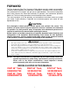 c. Store the battery with a full charge. A discharged battery will freeze (refer to the table below). Specific Gravity Freezing Temp (°F) 1.265 -71 1.250 -62 1.200 -16 1.150 5 1.100 16 c. Attach the end of the black jumper cable to the Negative terminal of the charged battery. d. Attach the other end of the black jumper cable to the frame of the unit with the low charge battery. 6.