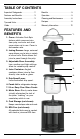 TABLE OF CONTENTS Important Safeguards . . . . . . . . . . . . . 2 Benefits . . . . . . . . . . . . . . . . . . . . . . . . 5 Features and Benefits . . . . . . . . . . . . . 3 Operation . . . . . . . . . . . . . . . . . . . . . . . 5 Assembly Instructions . . . . . . . . . . . . . 3 Cleaning and Maintenance . . . . . . . . . 6 Tips and Hints . . . . . . . . . . . . . . . . . . . 4 Recipes . . . . . . . . . . . . . . . . . . . . . . . . 6 Yields . . . . . . . . . . . . . . . . . . . . . . . . . .