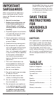 IMPORTANT SAFEGUARDS trical outlet. Not doing so could create a risk of fire, especially if the appliance touches the walls of the garage or the door touches the unit as it closes. When using electrical appliances, basic safety precautions should always be followed including the following: SAVE THESE INSTRUCTIONS FOR HOUSEHOLD USE ONLY 1. Read all instructions. 2. Unplug from outlet when not in use, before putting on or taking off parts, and before cleaning; Allow to cool before handling. 3.