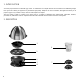 1. Dôme en acier brossé avec poignées isolantes. 2. 1 bac de cuisson pour œufs moulés, permet de cuire de 1 à 3 œufs. 3. 1 support pour œufs, capable de recevoir jusqu’à 7 œufs à cuire à la coque, mollets ou durs. la base. 4. Placer le dôme sur le support. 5. Brancher le cordon d’alimentation. Le cuiseur à œufs est maintenant prêt à fonctionner. 4. Base avec plateau à revêtement antiadhésif. B. CONSEILS D’UTILISATION 5.