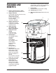 11 12 13 14a 14b 14c 12. Charcoal Water Filter (not shown) and Holder (see page 9 for actual filter) Charcoal water filter eliminates chlorine, bad tastes and odours from tap water. 13. Burrgrinder 14. Coffee Channel Assembly a. Channel Cover Flips back, for cleaning of coffee chute. NOTE: Cover must be in place before grinding. b. Coffee Chute c. Grind Chute Lever For easy cleaning 15. Filter Basket Door Release Button 16.