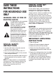 SAVE THESE INSTRUCTIONS FOR HOUSEHOLD USE ONLY WARNING: RISK OF FIRE OR ELECTRIC SHOCK The lightning flash with arrowhead symbol within an equilateral triangle is intended to alert the user to the presence of uninsulated dangerous voltage within the product’s enclosure that may be of sufficient magnitude to constitute a risk of fire or electric shock to persons.