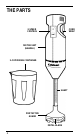 THE PARTS 2-SPEED CONTROL CORD WRAP MOTOR UNIT (HANDLE) 2-CUP MIXING CONTAINER SHAFT PROTECTIVE GUARD METAL BLADE 4