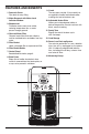 FEATURES AND BENEFITS 1. Reservoir Cover Flips back for easy filling. 2. Water Reservoir with Water Level Indicator Window 3. Showerhead Distributes water evenly over coffee, reducing temperature loss as water passes through grounds. 4. Charcoal Water Filter Charcoal water filter eliminates chlorine, calcium and bad tastes and odors from tap water. 5. Filter Basket Holds a #4 paper filter or a permanent filter. 6. Filter Basket Holder 7. Control Panel See detailed illustration, page 6. 8.