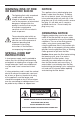 WARNING: RISK Of FIRE OR ELECTRIC SHOCK The lightning flash with arrowhead symbol within an equilateral triangle is intended to alert the user to the presence of uninsulated dangerous voltage within the product’s enclosure that may be of sufficient magnitude to constitute a risk of fire or electric shock to persons.