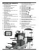 FEATURES AND BENEFITS 17. 1. Water Reservoir Lid 2. Removable 34-ounce Water Reservoir 3. Cup-Warming Plate Convenient place to warm cups. 4. 19 Bar Pump (not shown) 5. Brew Head Lever Use the die-cast metal lever to open and close the brew head. 6. Brew Head 7. Brewing Spout Strategically positioned for optimal results. 8. Used Capsule Container (Also contains some residual liquid left after brewing.) 9. Espresso Cup Tray Folds up when taller mugs need to be used. 10. Drip Tray Grate 11.