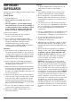 GUARDE ESTAS INSTRUCCIONES PARA USO DOMÉSTICO SOLAMENTE ÍNDICE Instrucciones de desembalaje ....................... 3 Medidas de seguridad importantes ................ 4 Piezas .............................................................. 6 Instrucciones de ensamblaje .......................... 7 Controles ........................................................ 7 Funciones ....................................................... 7 Instrucciones de uso .......................................