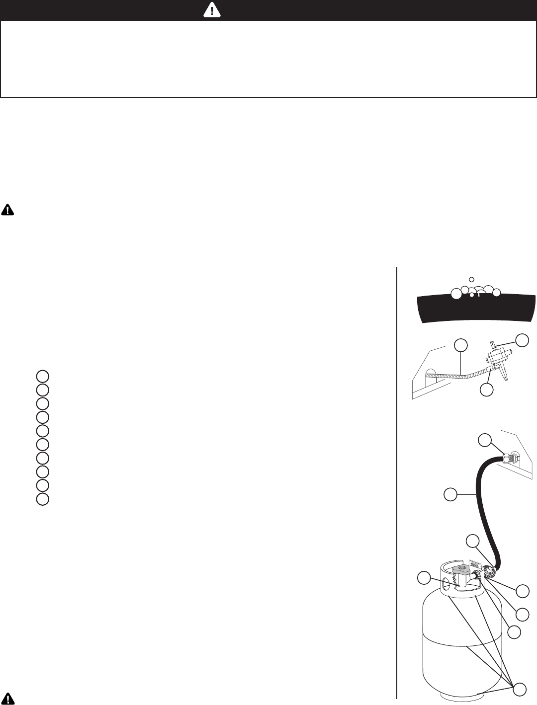 • Every time the LP gas cylinder is refilled, exchanged or if any of the gas components are disconnected or