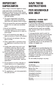 IMPORTANT SAFEGUARDS When using an electrical appliance, basic safety precautions should always be followed to reduce the risk of fire, electric shock and/or injury, inlcuding the following: 1. READ ALL INSTRUCTIONS BEFORE USING. 2. The use of attachments not recommended or sold by the manufacturer may cause fire, electric shock or injury. 3. Do not exceed the maximum capacities listed in this use and care instruction book. 4. Do not use outdoors. 5.