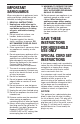 IMPORTANT SAFEGUARDS 15. WARNING: TO REDUCE THE RISK OF FIRE OR ELECTRIC SHOCK, ONLY AUTHORIZED PERSONNEL SHOULD DO REPAIRS. 16. Do not operate your appliance in an appliance garage or under a wall cabinet. When storing in an appliance garage always unplug the unit from the electrical outlet. Not doing so could create a risk of fire, especially if the appliance touches the walls of the garage or the door touches the unit as it closes.