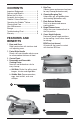 5. Drip Tray Collects grease and removes from base for easy cleanup (dishwasher safe). CONTENTS Important Safeguards ............................ Features and Benefits............................ Before the First Use ............................... Assembly Instructions ........................... Griddler® Deluxe Positions .................... Operating the Griddler® Deluxe ............. Cleaning and Care ................................. User Maintenance .................................. Storage .......